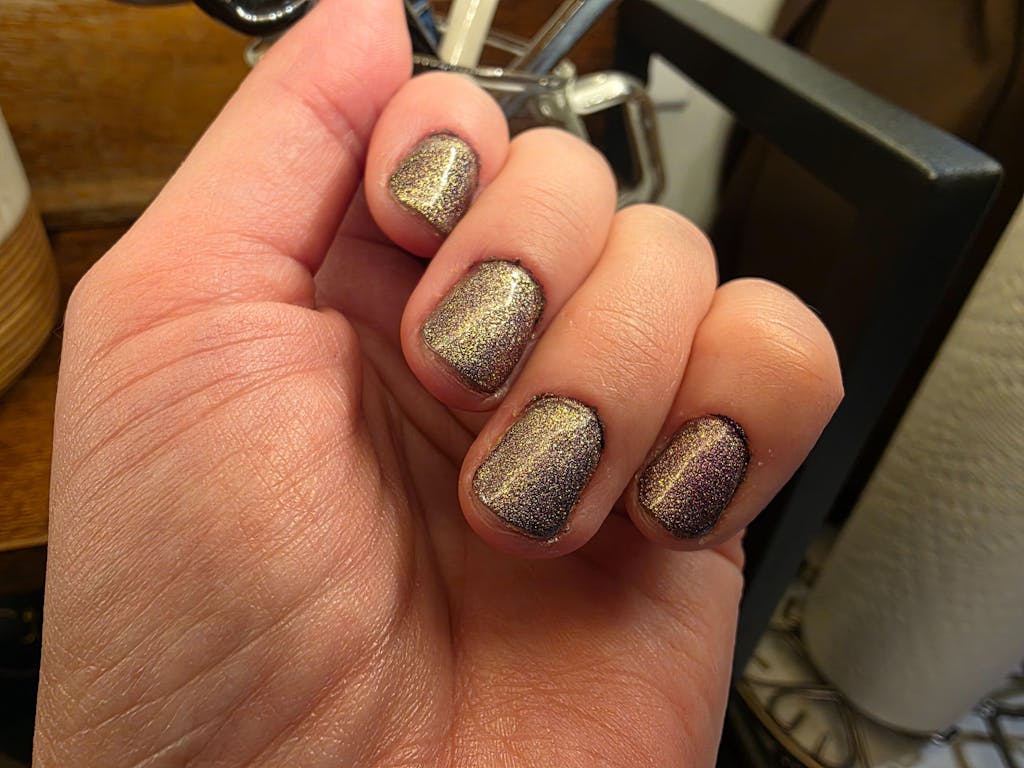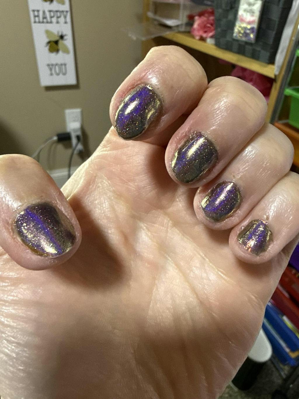 One of my absolute favorite shades! I made sure to grab 2 more when they were on sale! :) I LOVE the way this shade has so many colors depending on how you're looking at it or if you apply it holographic!